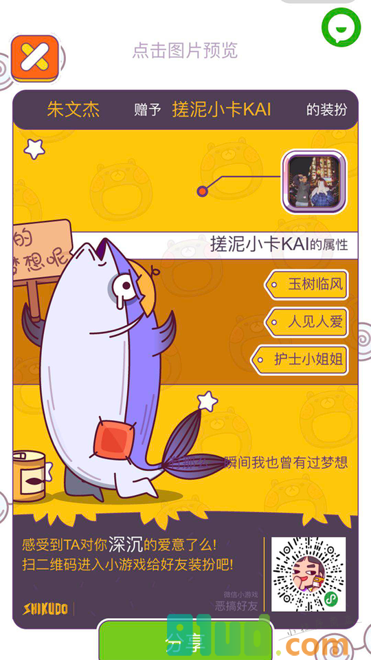 - 使用微信扫描页面上方二维码进入恶搞好友