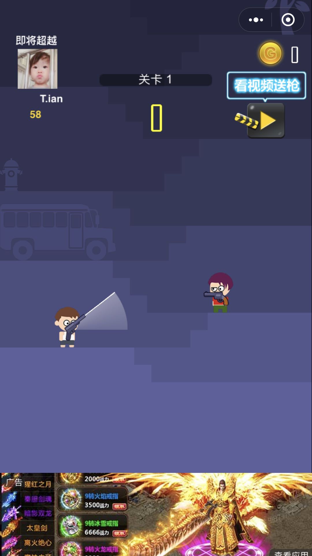疯狂杀手是一款休闲射击类小游戏,你需要精准的射击到对面的敌人才能通关,爆头有惊喜,连击有金币,现在让我们一起来试试吧!