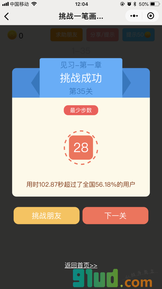 - 使用微信扫描页面上方二维码进入最强一笔画