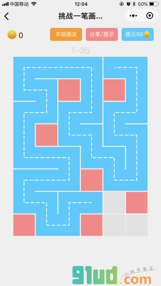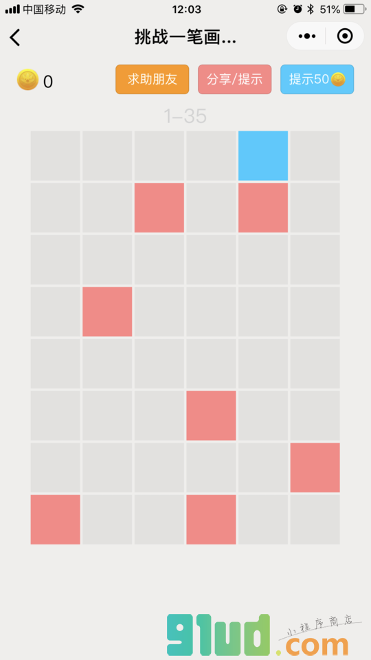 最强一笔画(BluePath)2014年在Apple Sotre上线并获得当期推荐。你只需要从蓝色块开始一笔画填满整个空白区域,注意红色块是不能操作的哟。华丽的极简连连线绘图配上富有禅意的体验将这一切演变成为一个需要动脑的思维挑战小程序。