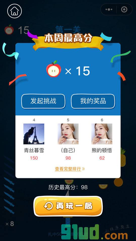 - 在微信中搜索“水果飞刀王”即可进入小程序