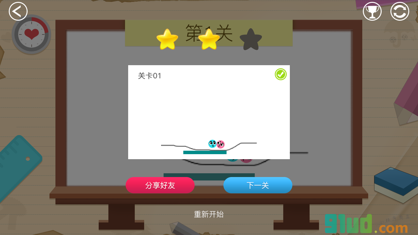 恋爱的球球通过画线或一个形状让两个小球相碰通关,发挥你的想象力