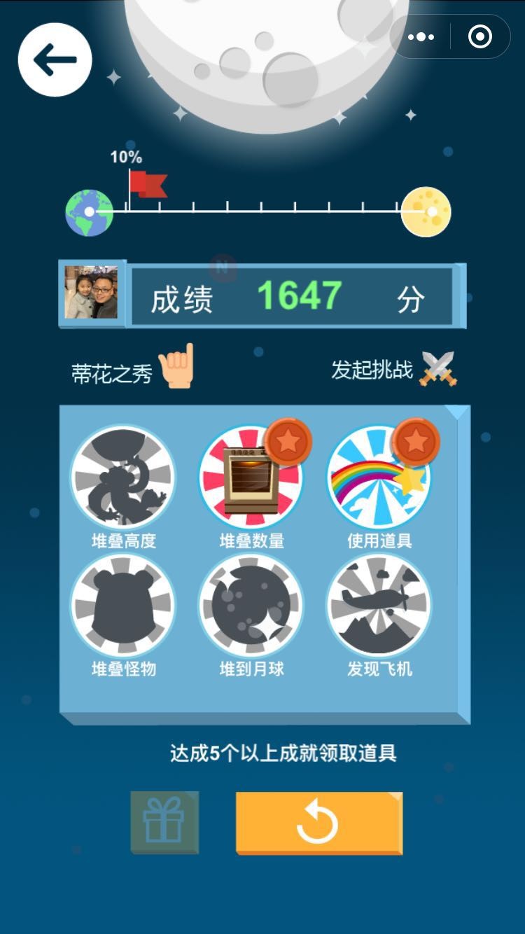 堆到月球微信小游戏由堆到月球团队开发,并于2018-06-25 10:45:16发布于小程序游戏盒子 2177.cn