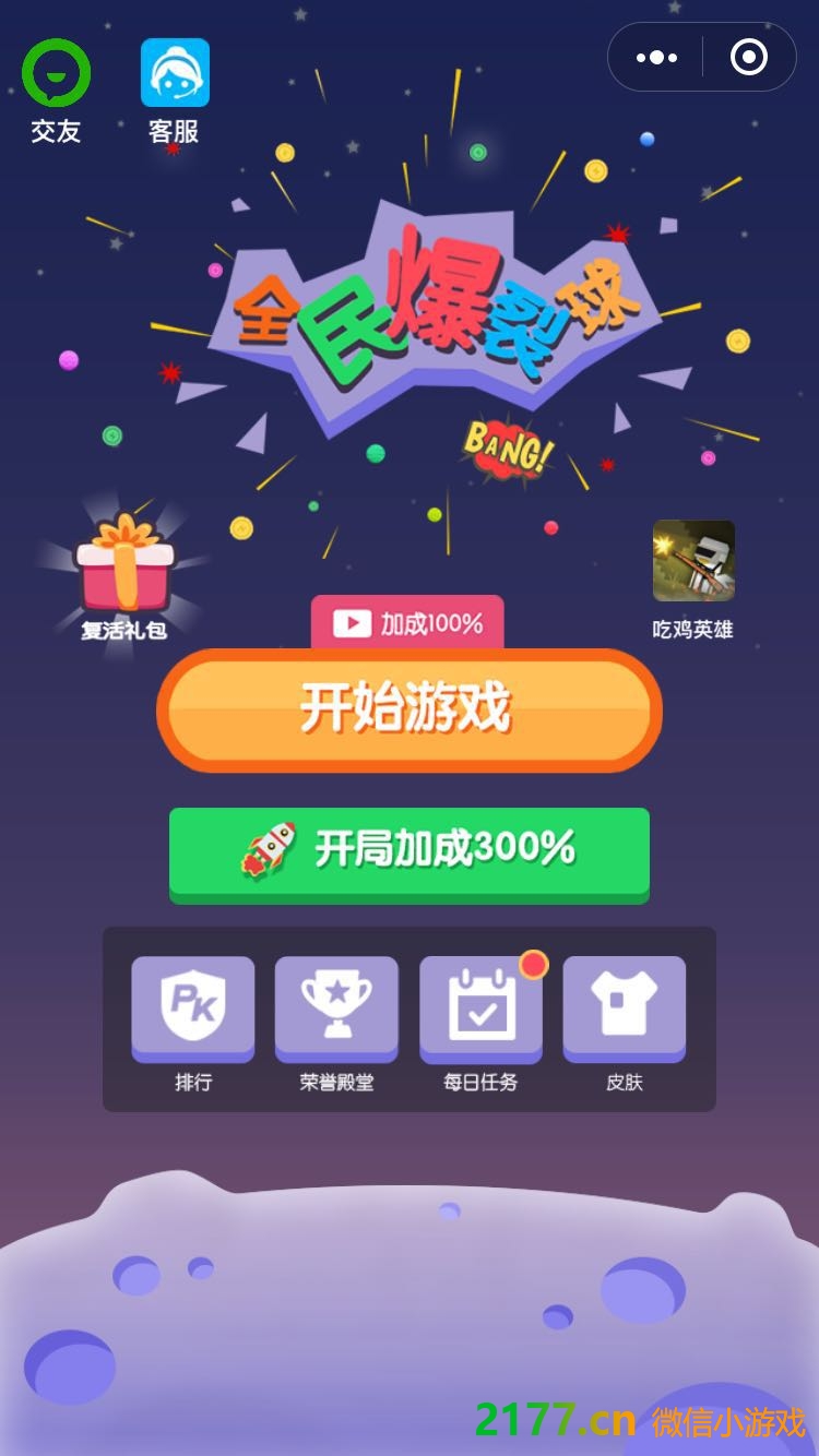 - 在微信中搜索“2177游戏”进入小程序后,搜索全民爆裂球就可以找到。