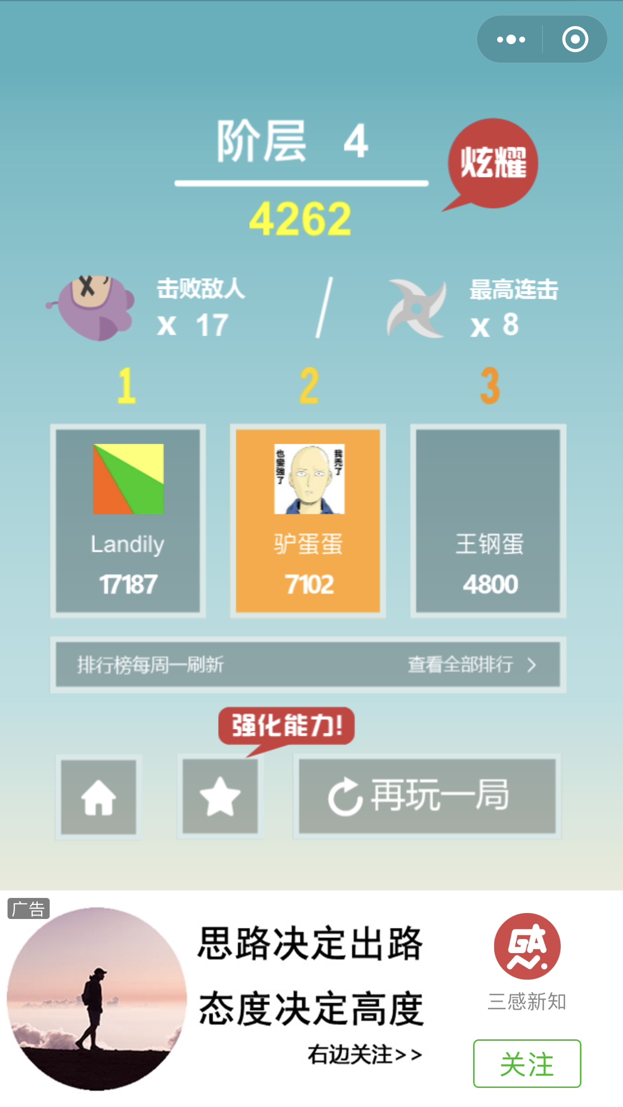 - 使用微信扫描页面上方二维码进入射射小忍者