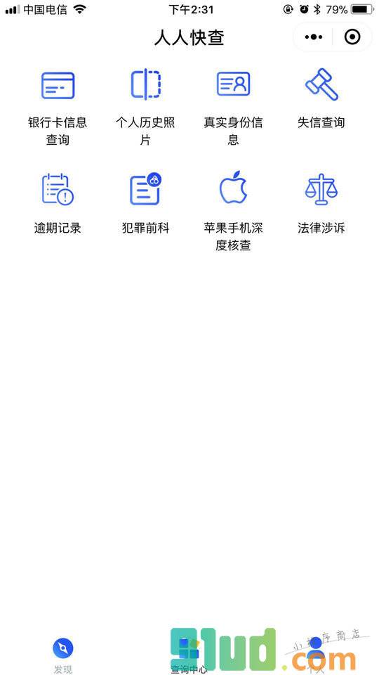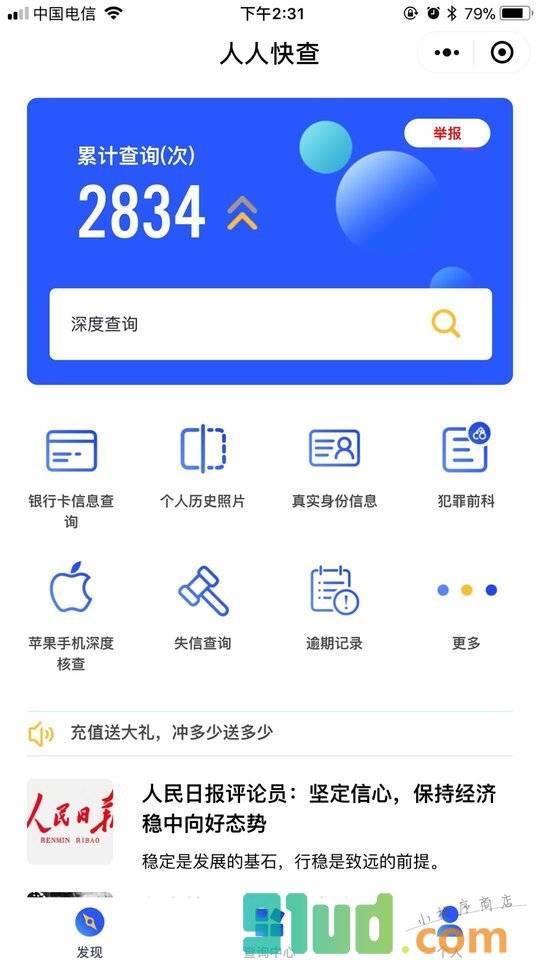 - 在微信中搜索“人人快查”即可进入小程序