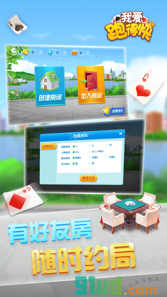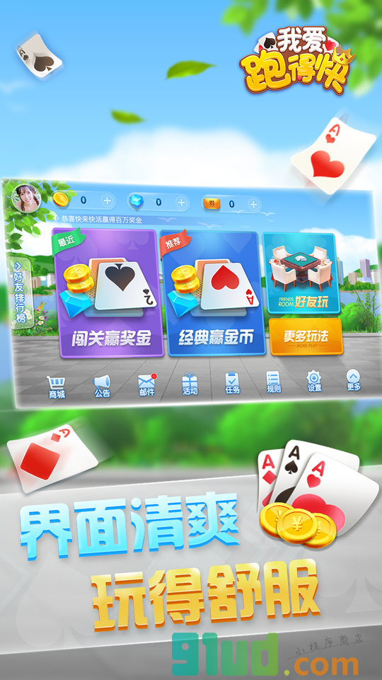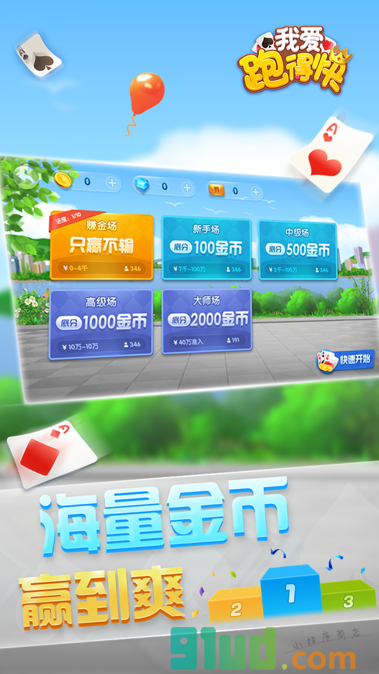 我爱跑得快是一款休闲类纸牌游戏。3人对战,16张牌,有大必出,先出完手中牌者为胜。 游戏主要特色: 1、\t闯关场:闯7关,瓜分1万! 2、\t金币场:海量金币,赢到爽! 3、\t好友场:随时随地可约好友战斗,血战到底! 4、\t比赛场:天天有比赛,奖金拿到手软!