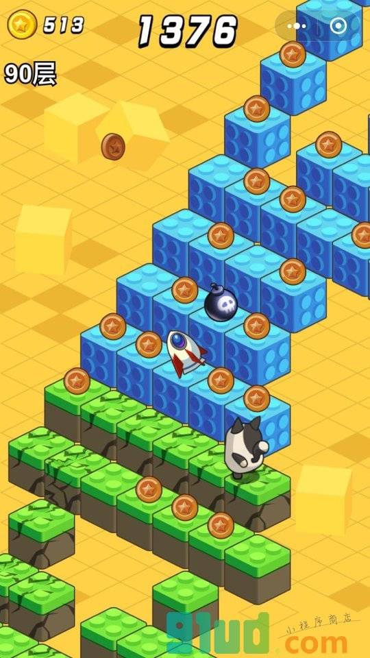 首款无限爬楼小游戏,开心猫里奥带你挑战魔改版跳一跳,金币福利Or炸弹陷阱?看你手速和反应力!快来试一试,看你能爬多少层?