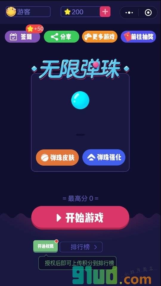 - 使用微信扫描页面上方二维码进入无限弹珠