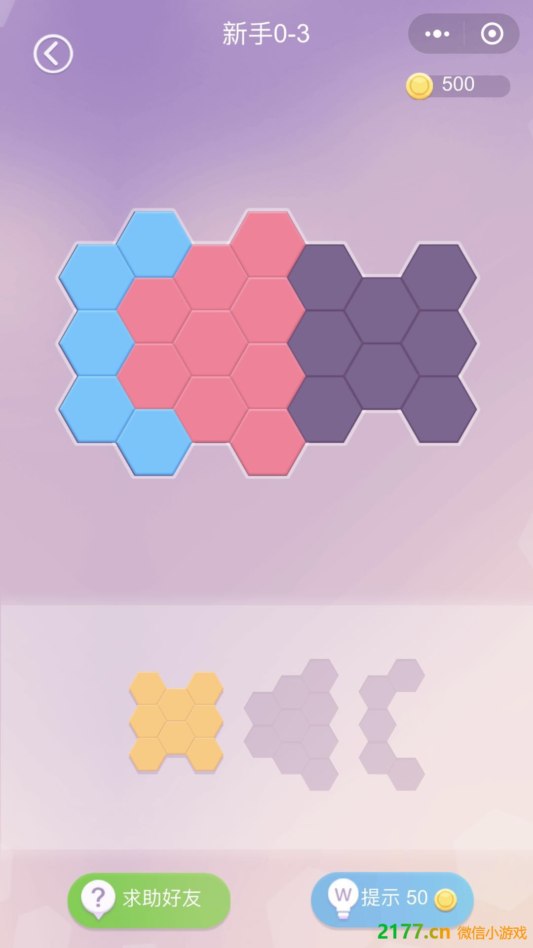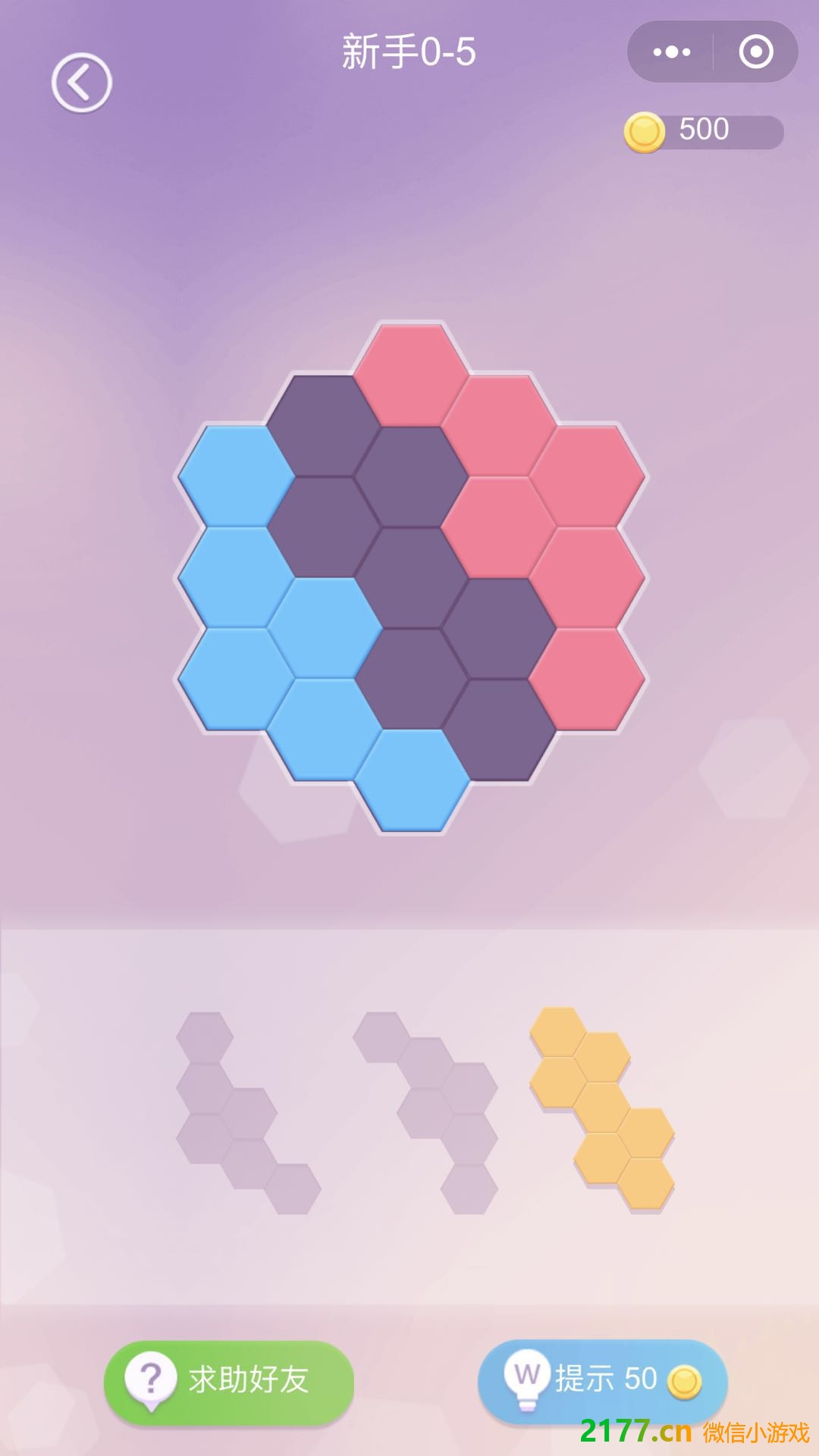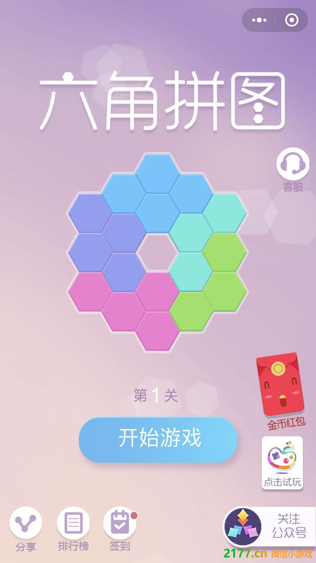 - 在微信中搜索“2177游戏”进入小程序后,搜索六角拼图就可以找到。