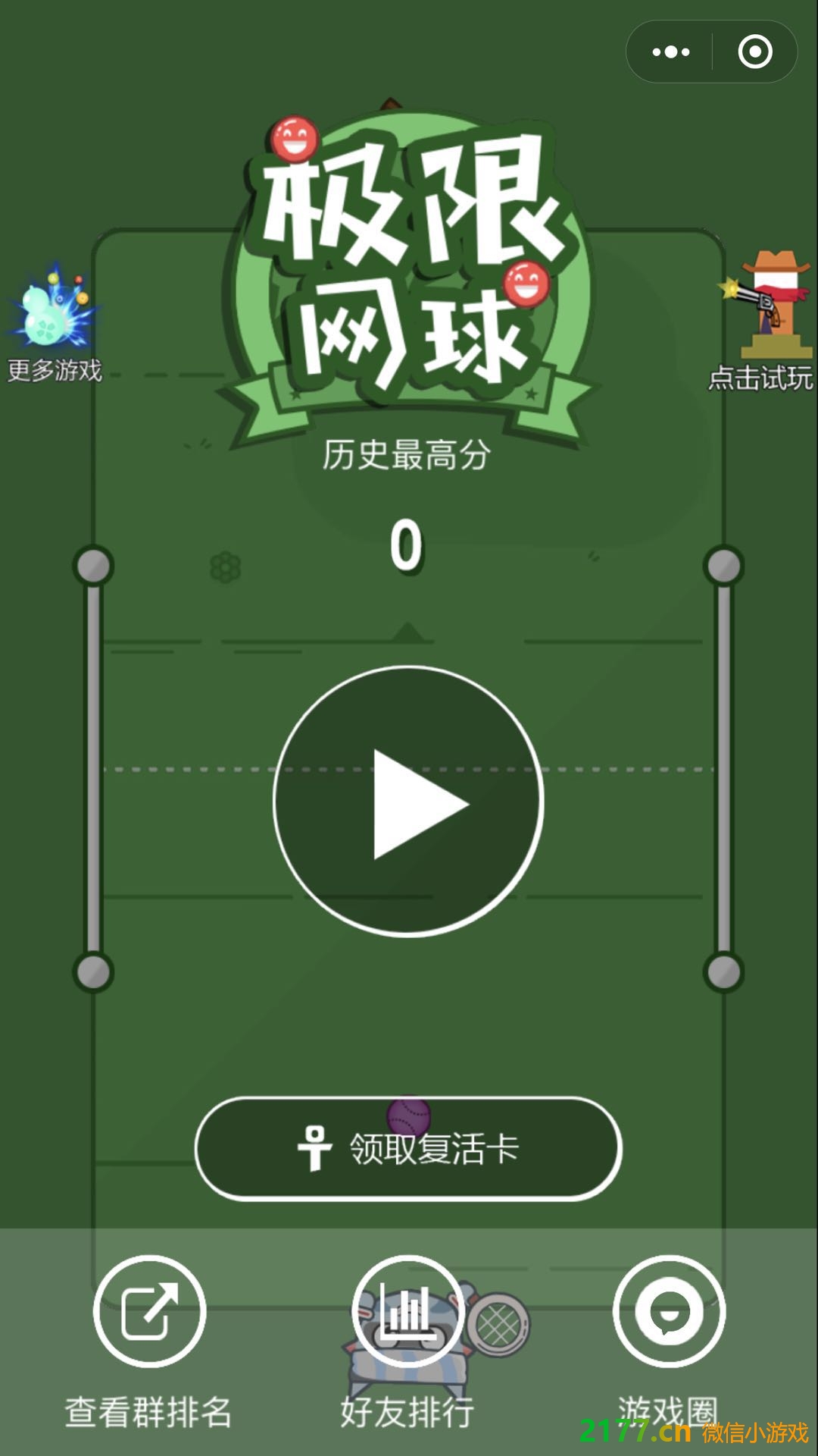 - 在微信中搜索“2177游戏”进入小程序后,搜索极限网球就可以找到。