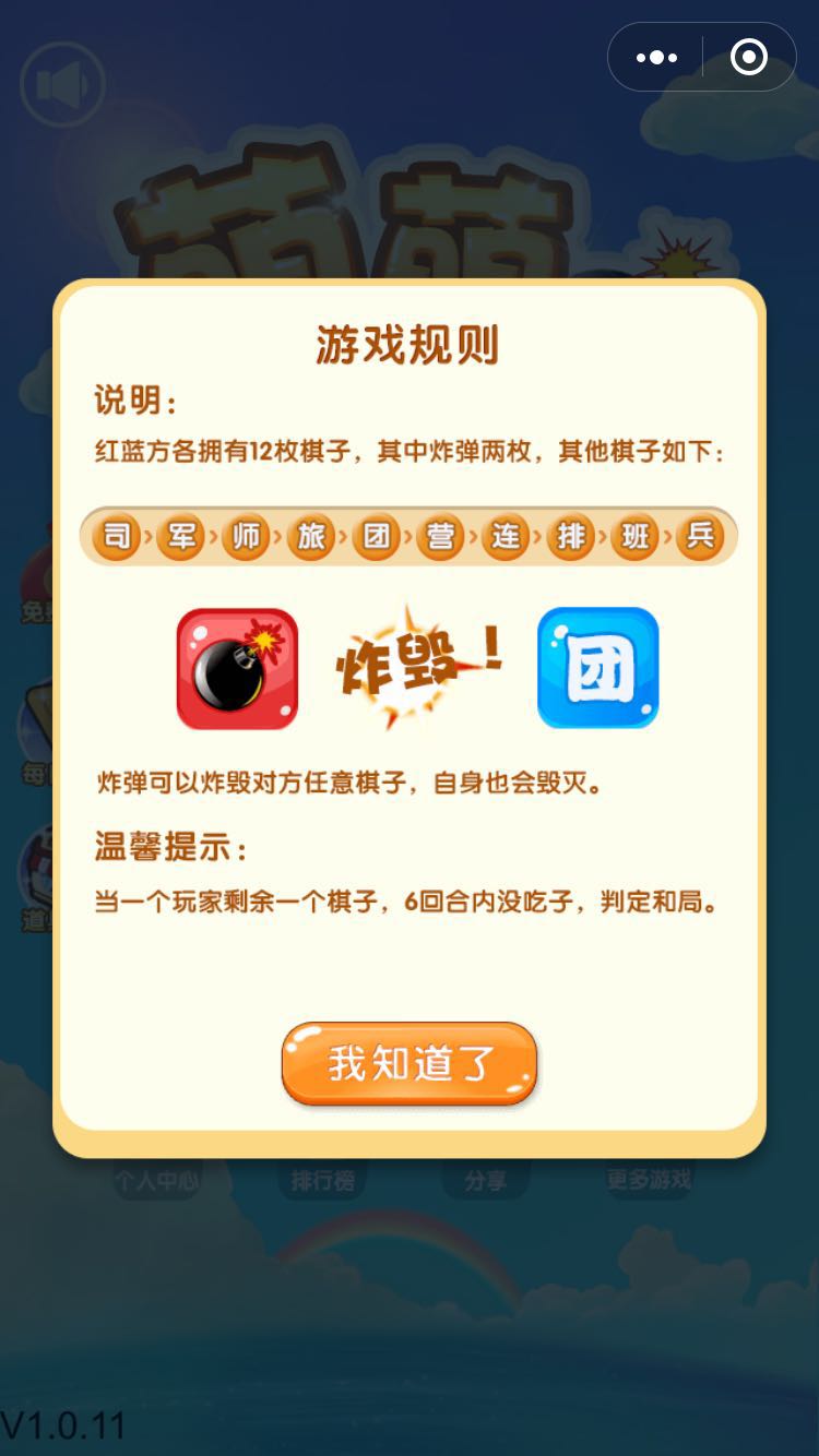 - 在微信中搜索“萌萌军棋”即可进入小程序