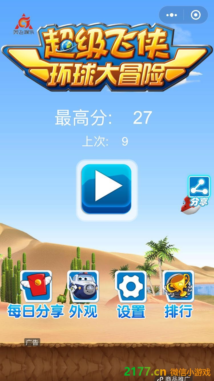 - 在微信中搜索“2177游戏”进入小程序后,搜索超级飞侠环球大冒险就可以找到。
