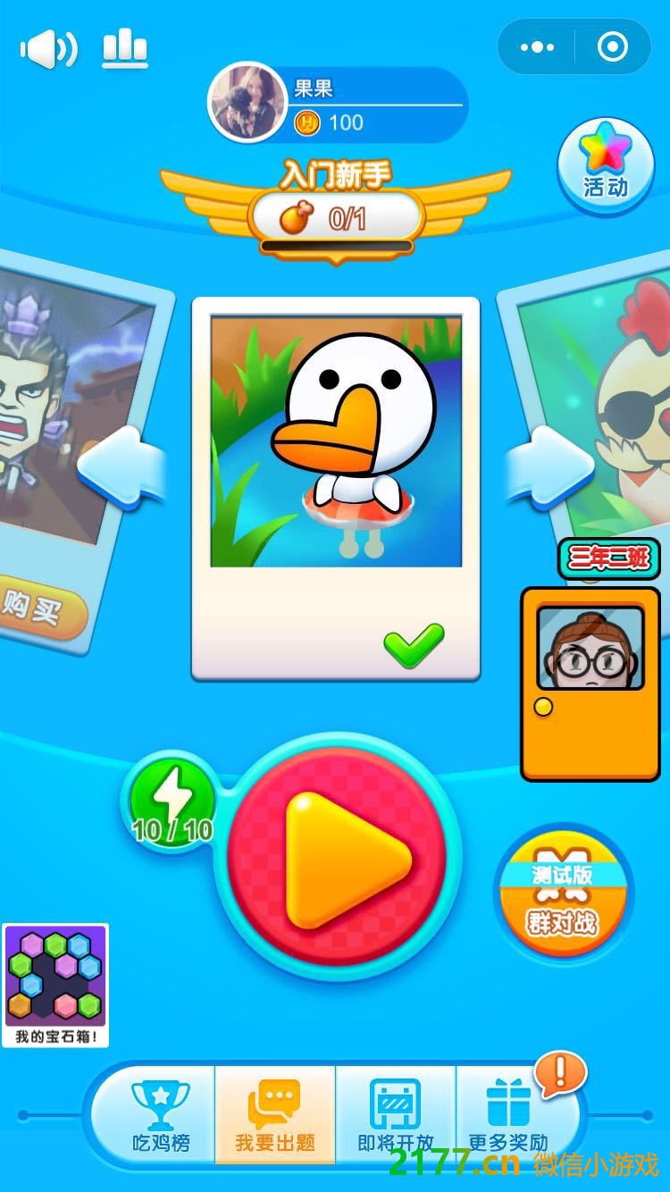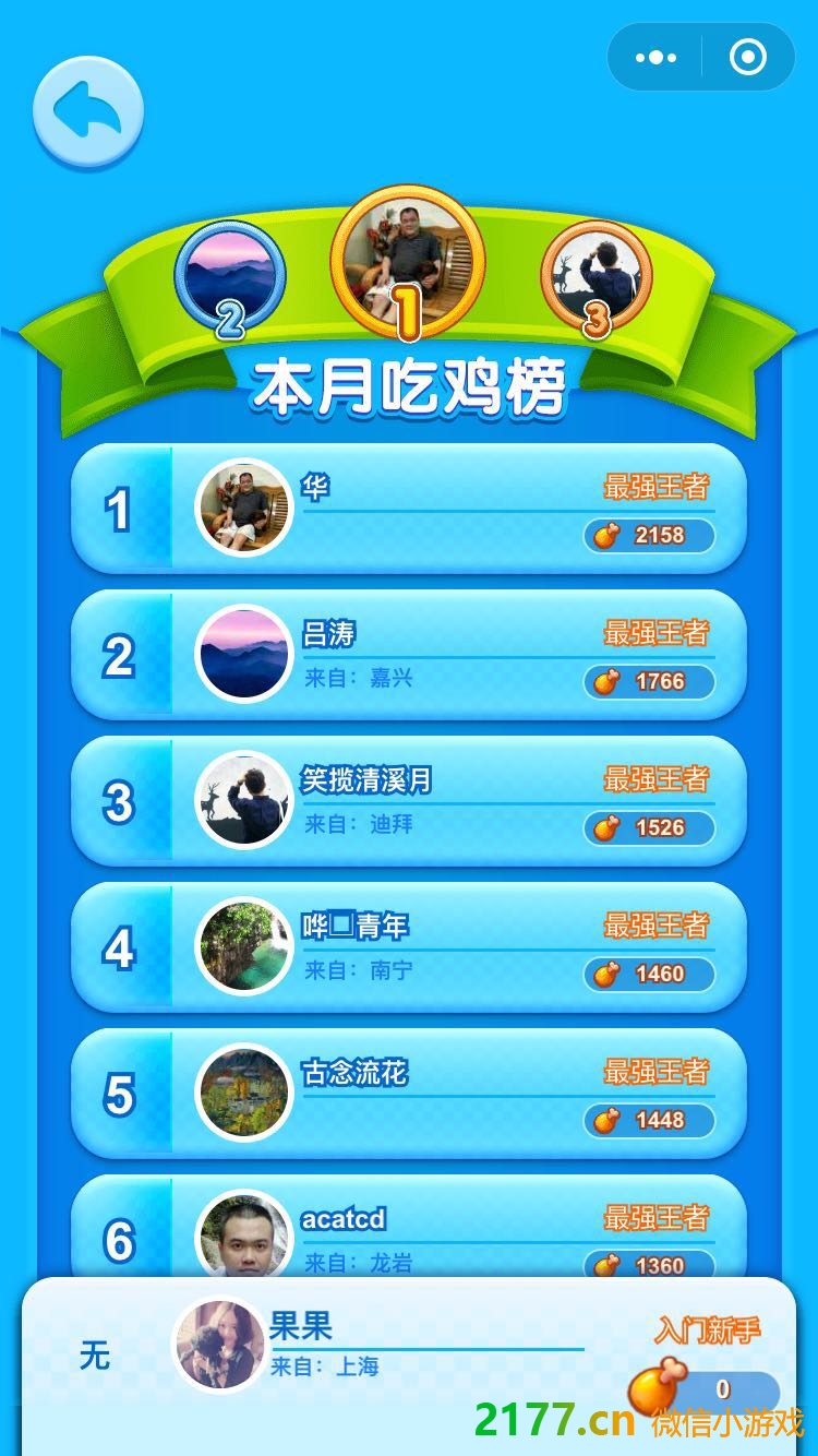 - 在微信中搜索“2177游戏”进入小程序后,搜索头脑吃鸡就可以找到。
