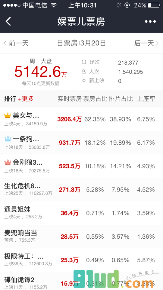 娱票儿专业版票房分析小程序,透过数据看电影!