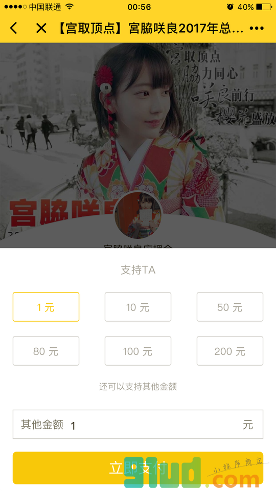 - 使用微信扫描页面上方二维码进入摩点微打赏
