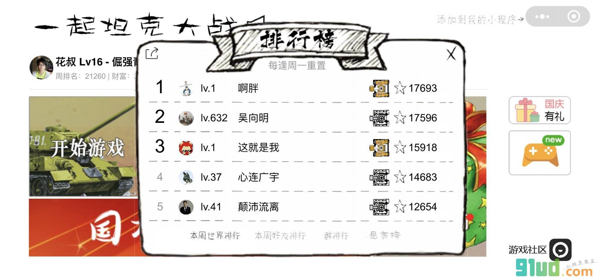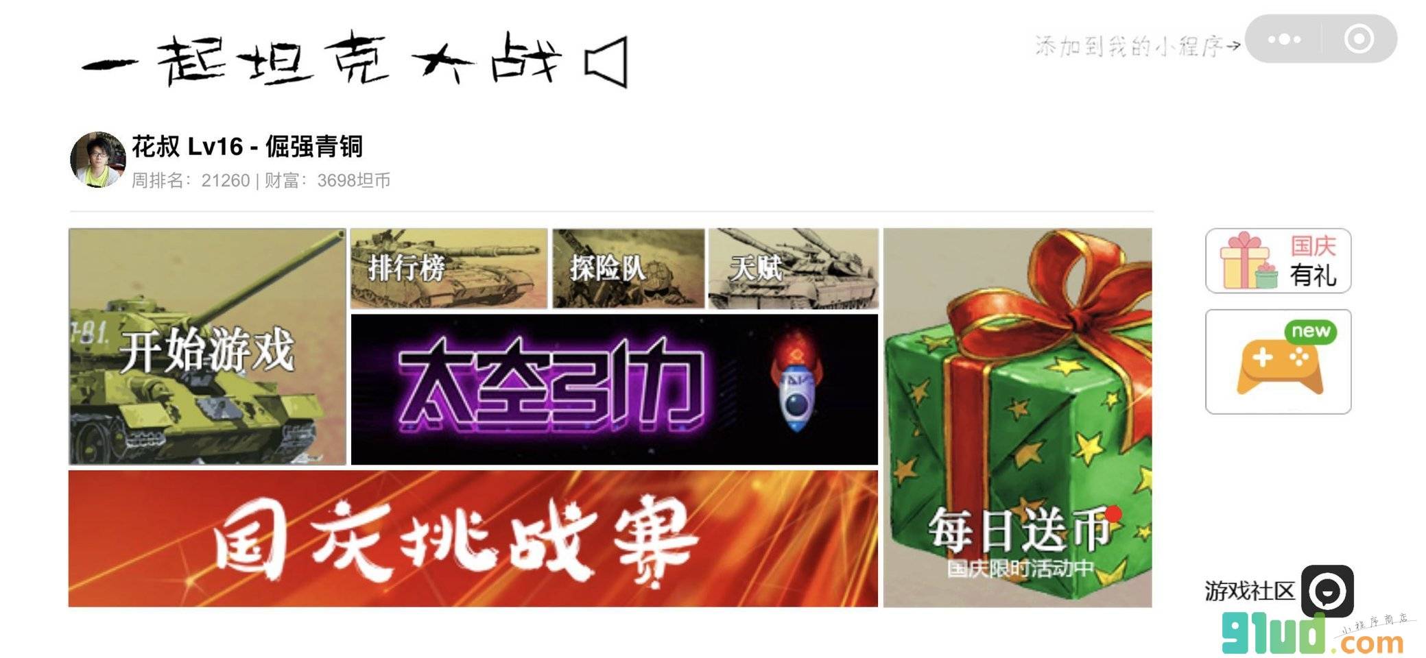 - 在微信中搜索“2177游戏”进入小程序后,搜索最强坦克就可以找到。
