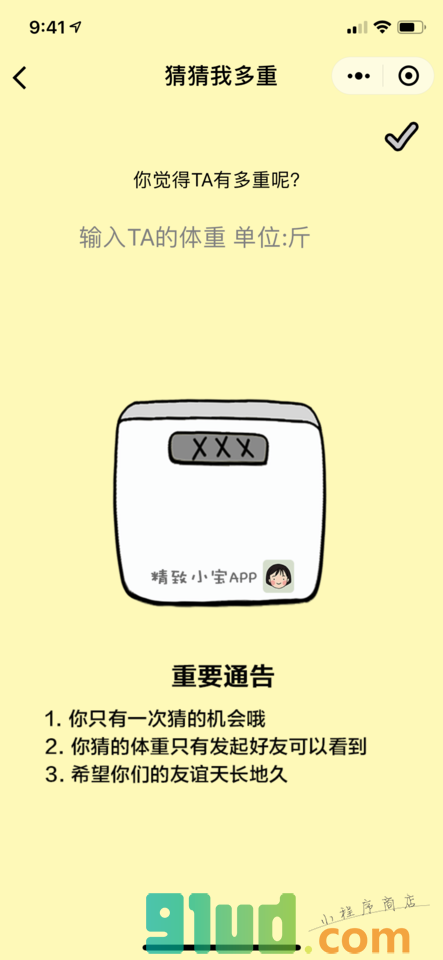 - 在微信中搜索“猜猜我多重”即可进入小程序