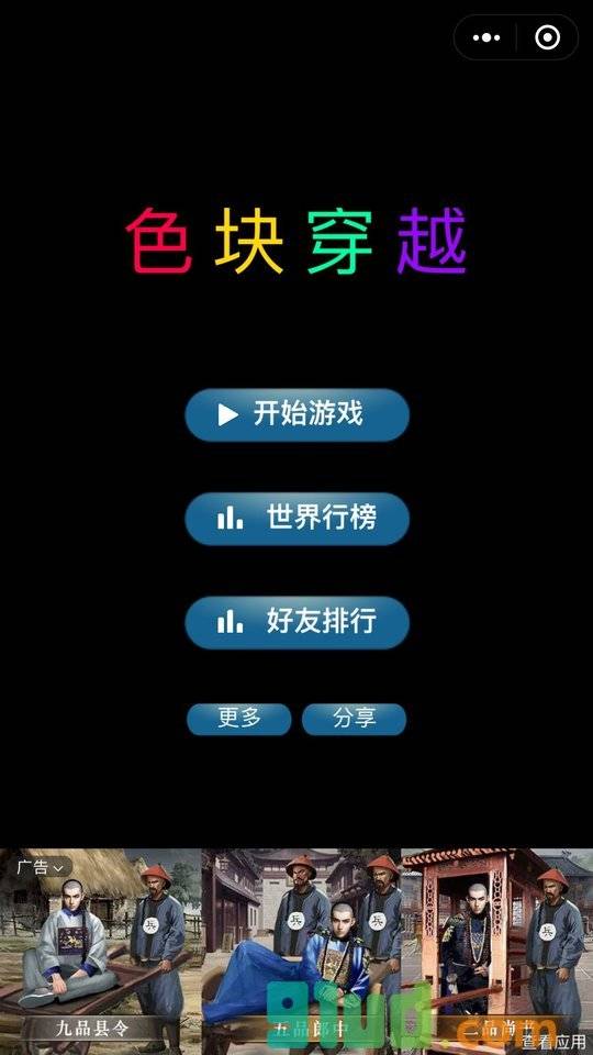 色块穿越微信小游戏由色块穿越团队开发,并于2018-10-19 20:34:27发布于小程序游戏盒子 2177.cn