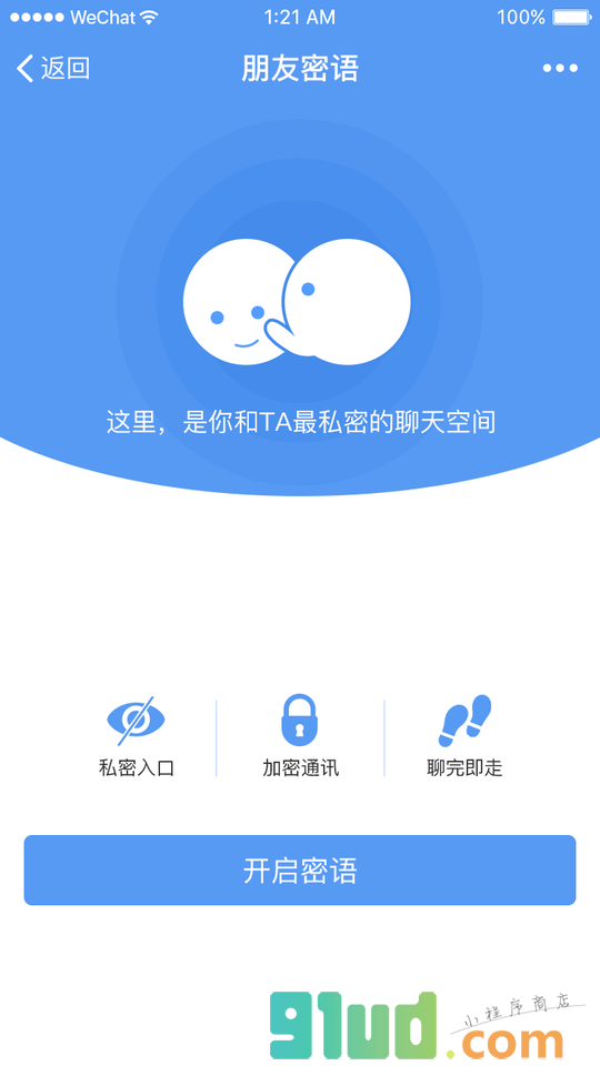 一个有密码的微信空间。①微信无聊天记录;②密码保护;③好友伪装;④避免消息提醒;⑤阅后即焚(即将上线)