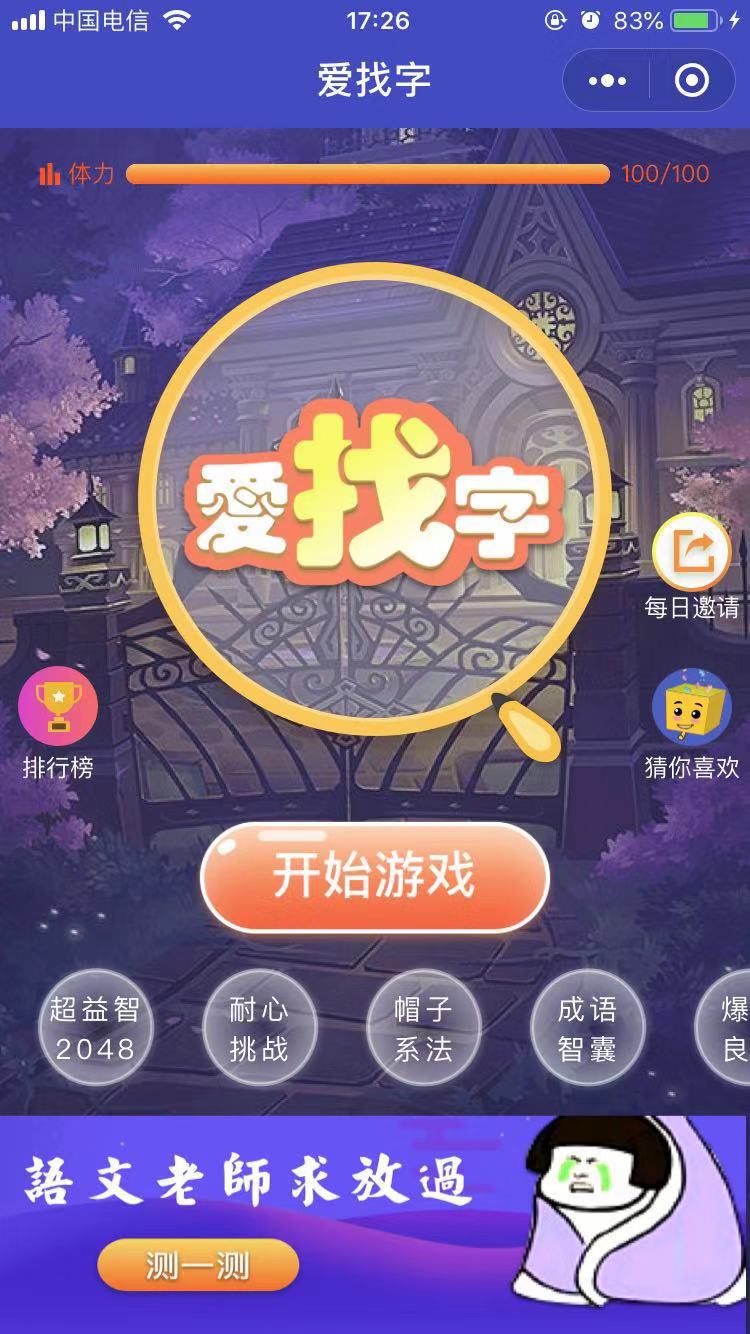 爱找字微信小游戏简介