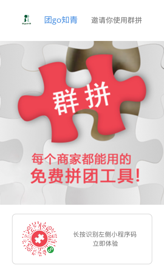 - 在微信中搜索“群拼”即可进入小程序