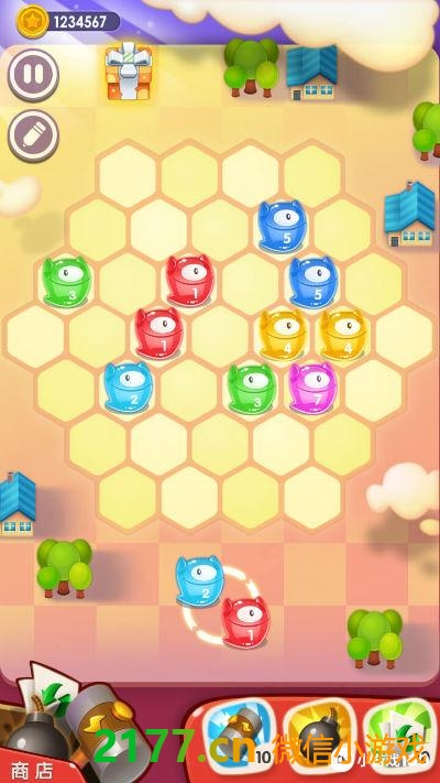 《疯狂怪兽消消乐》是一款非常好玩的六边形消除类微信小游戏。让我们帮助主人将疯狂的怪兽进行消除吧!