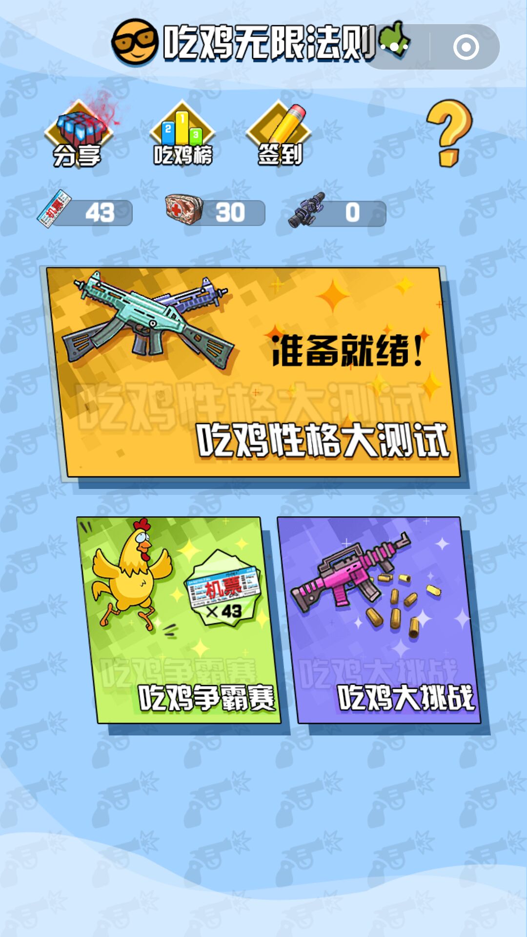 - 在微信中搜索“无限吃鸡法则”即可进入小程序