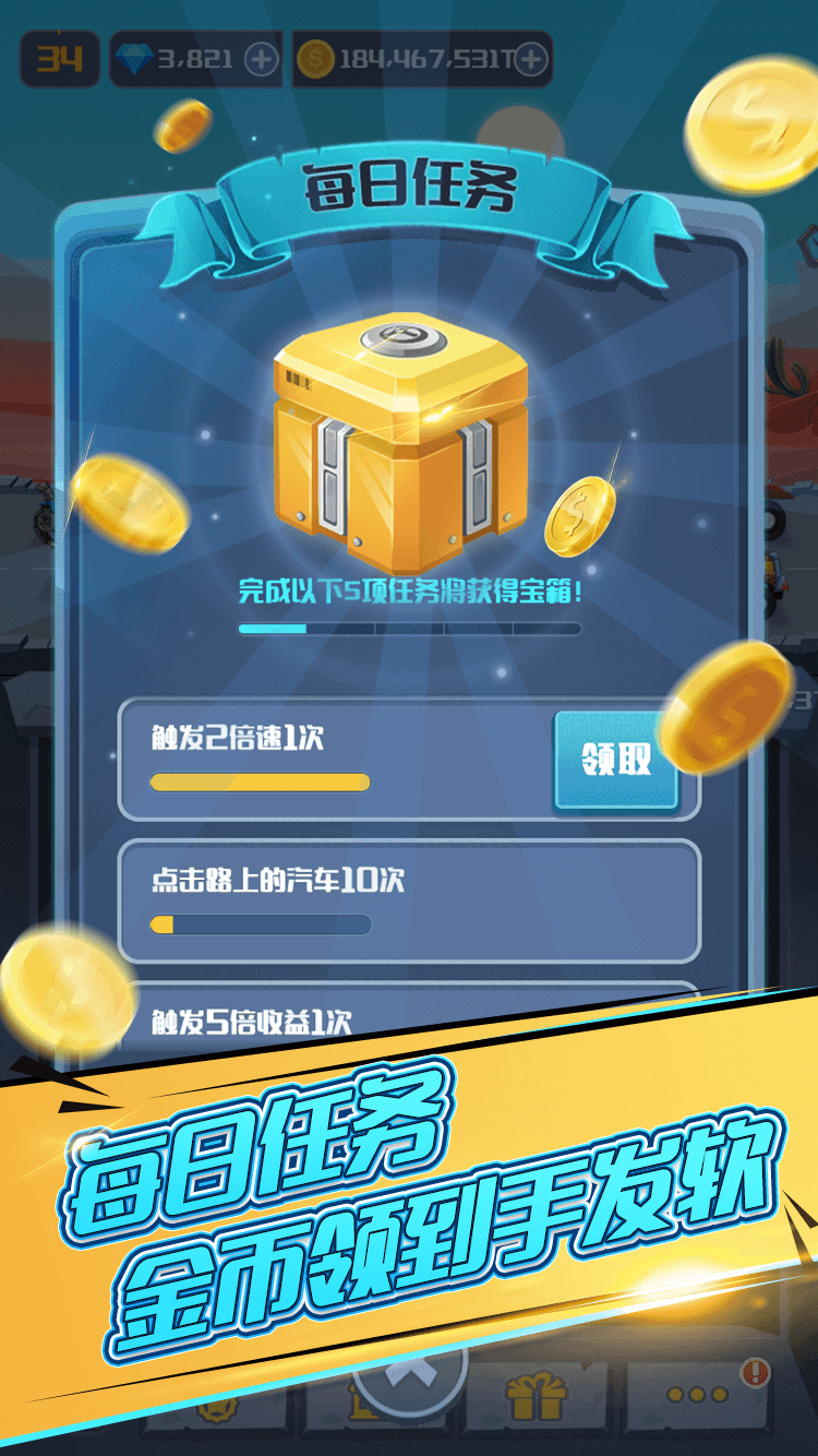 机车梦工厂是一款模拟经营游戏,在游戏中,你需要建造一个属于自己的汽车梦工厂。这是一款自由的游戏,你可以自由发挥。游戏中购买、合并和管理你的交通工具,这样他们就能为你创造更多的资本。也许有一天,你的汽车会从地面起飞,飞速前进。 现在就开始吧~ 通过名次,我们肯定可以发现,经营赚钱需要通过赛车去赚钱,赛车会有级别,每个级别赚到的钱是不一样的,所以我们肯定要把他们升级的越来越高。