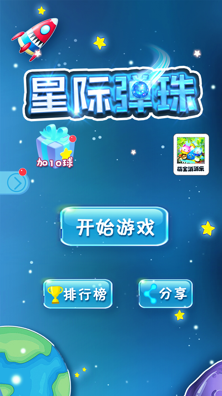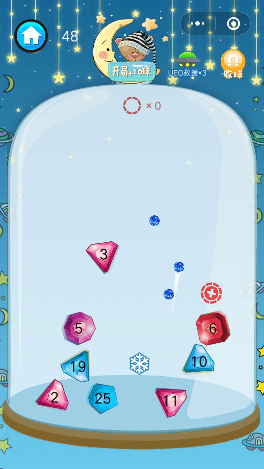游戏简介: 星际弹珠是一款精美的休闲弹珠游戏,在这里你可以挖掘无穷的乐趣,召唤UFO支援,发动冰冻技能,激光轰炸。休闲原来也可以这么奢侈。 星际弹珠怎么玩: 开局发射弹珠,粉碎方块,打击道具还可以发动强力技能哦。 还可以点击增加十球,球球越多越好玩,怎么样心动了吧