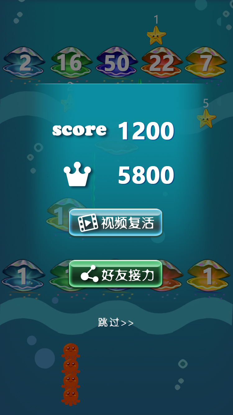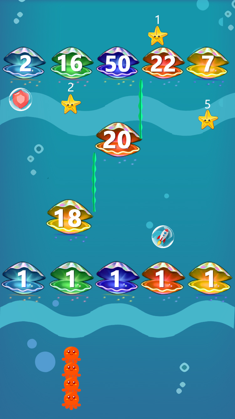 游戏简介: 让人心情愉悦的海洋主题,让生活充满正能量,像小鱼一样冲冲冲,它们已经称霸海洋数万年。 游戏怎么玩: 鱼群兄弟撞向贝壳,吃星星可以增加鱼群数量。 别忘了吃掉盾牌和火箭哦,可以发动强力技能