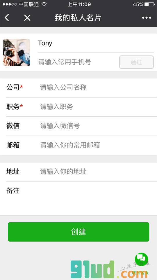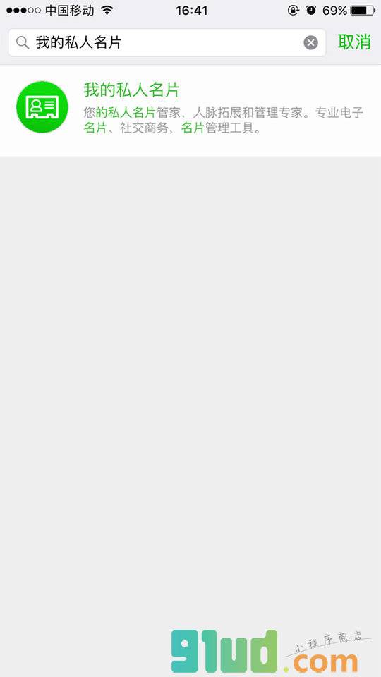 - 在微信中搜索“我的私人名片”即可进入小程序