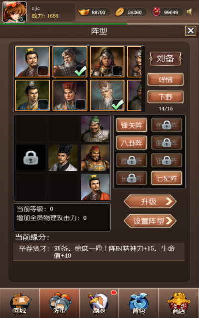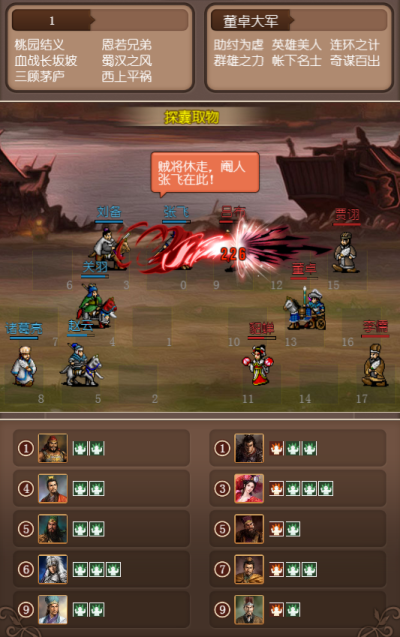 这是一款三国题材九宫格策略对战游戏,通过招募武将,搭配武将之间的缘分,选择合适的阵型和站位,击败对手