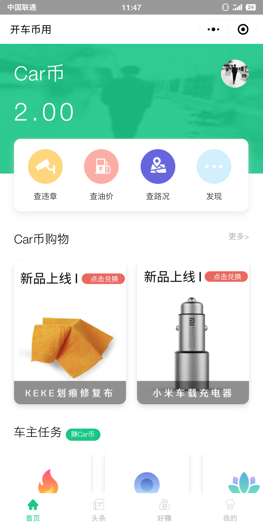 平台已涵盖的业务范围包括:查违章、缴纳 违章、保险、洗车、加油、保养、内容资讯 等车主刚需的综合性服务应用,其中Car币 作为您的数据资产,将会覆盖至全平台,我 们将构建一个集“娱乐+消费+车辆”于一体 的数字世界,未来将会切入到线下车主所到 之处的使用场景,让您的每一次出行都拥有 价值。
