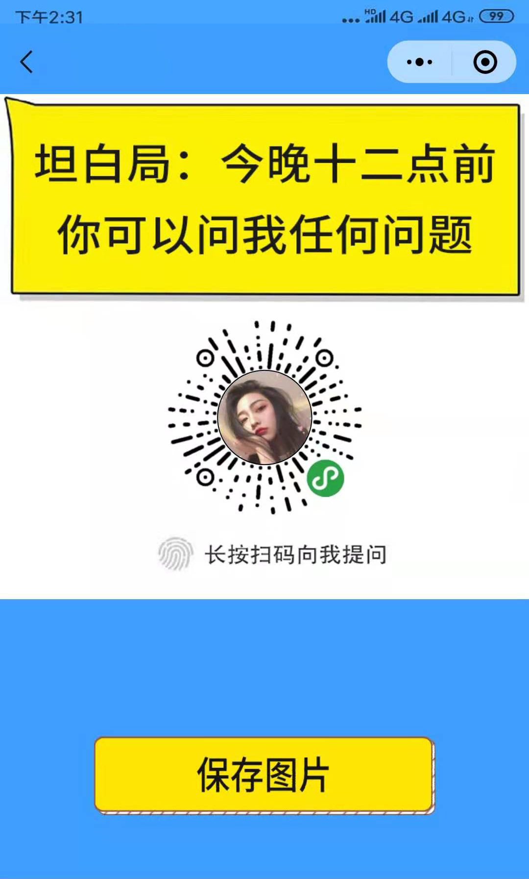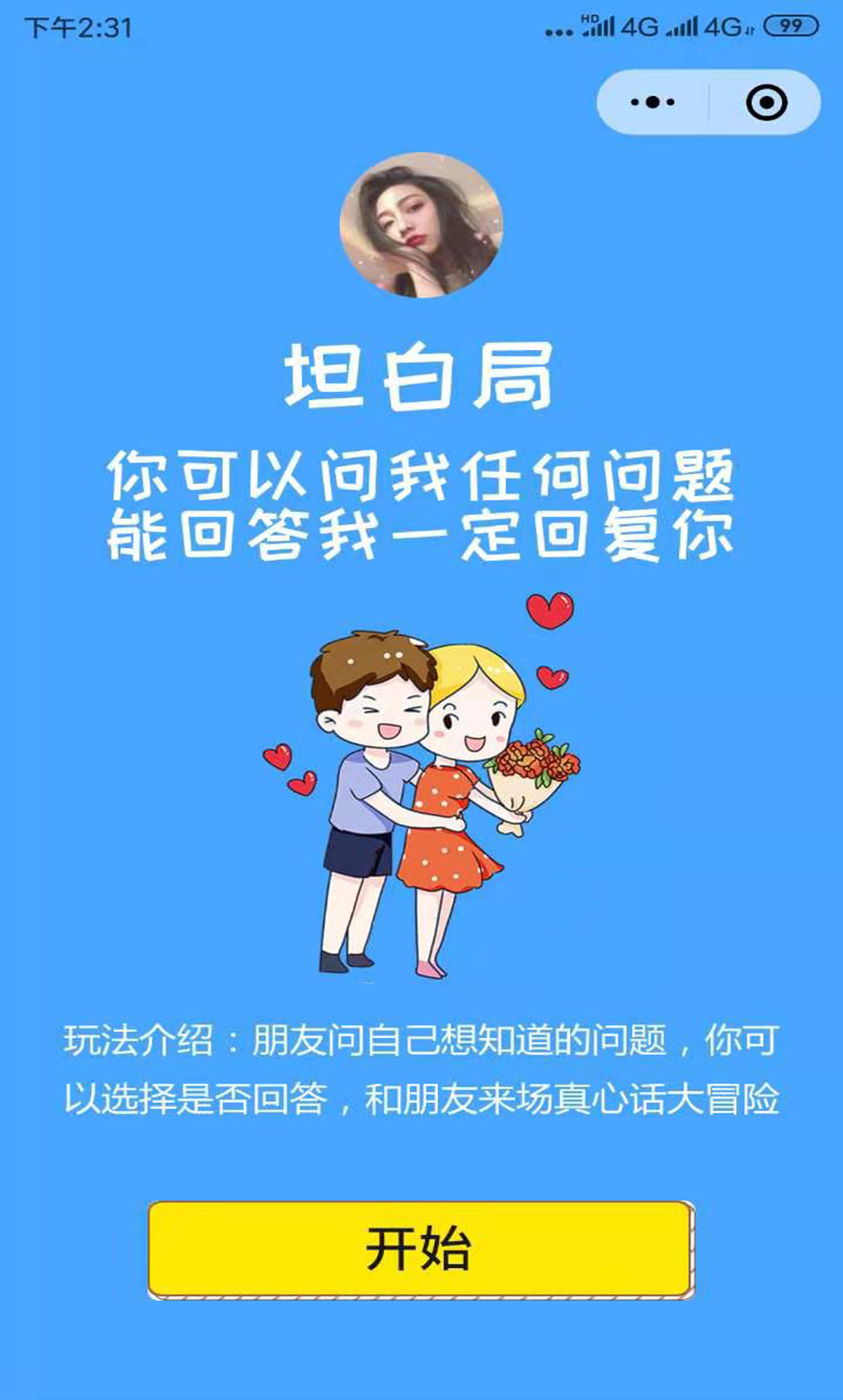 - 使用微信扫描页面上方二维码进入真心话坦白局
