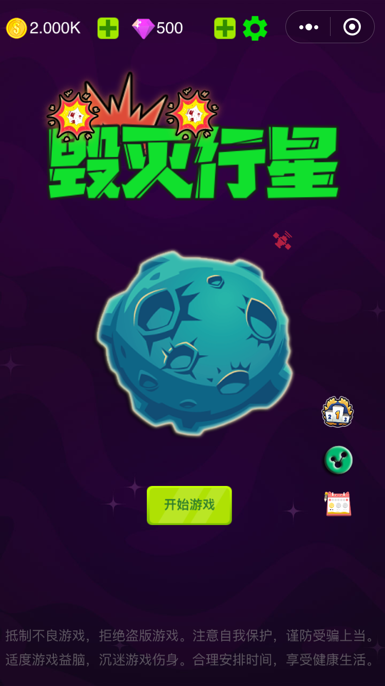 - 在微信中搜索“毁灭行星”即可进入小程序