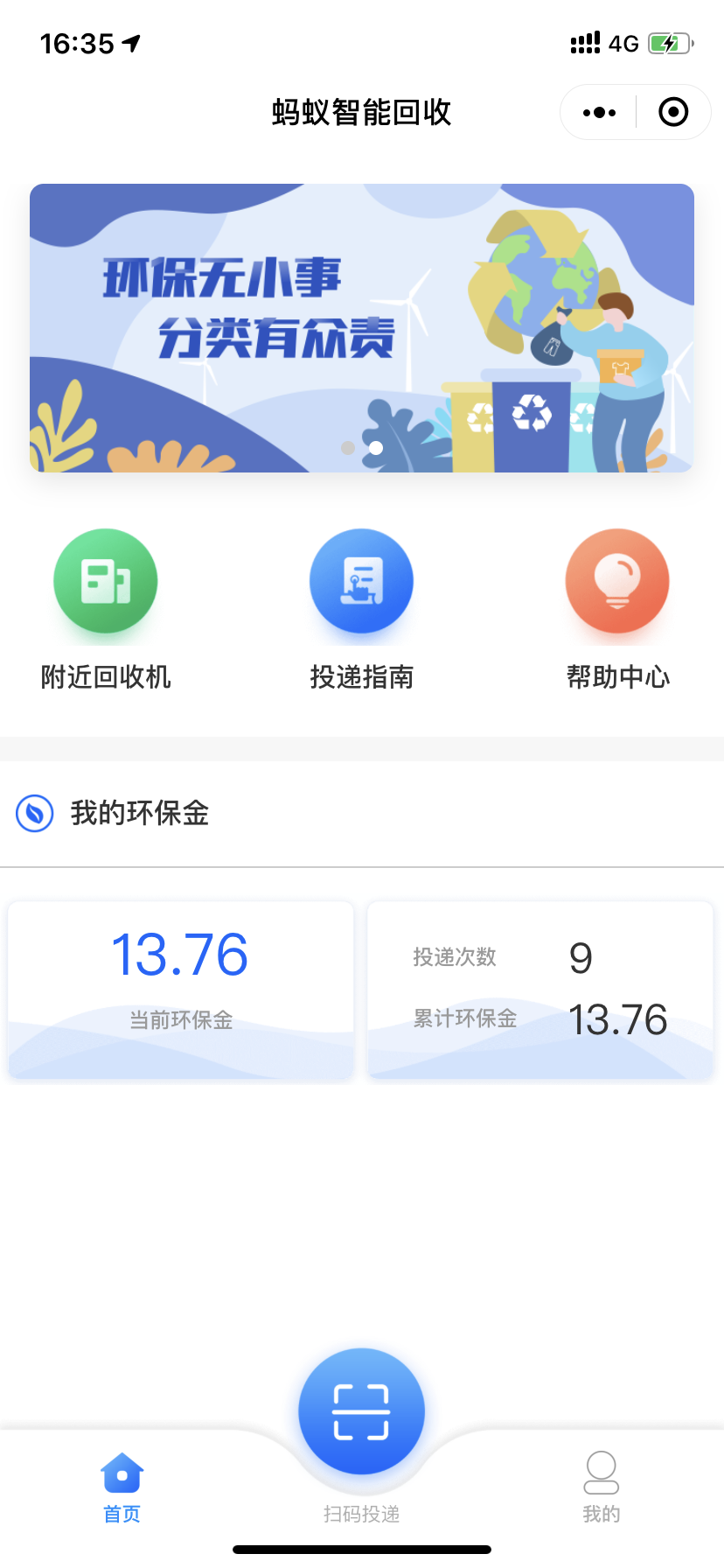 - 使用微信扫描页面上方二维码进入蚂蚁智能回收