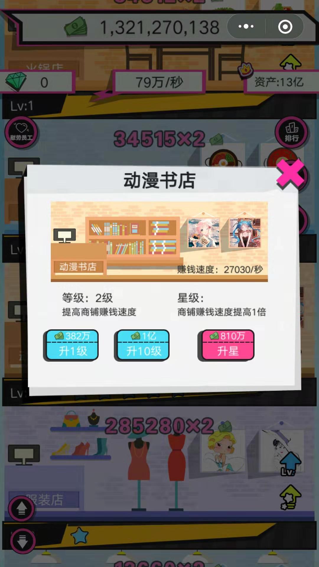 开局有家店微信小游戏由开局有家店团队开发,并于2019-12-16 10:12:29发布于小程序游戏盒子 2177.cn