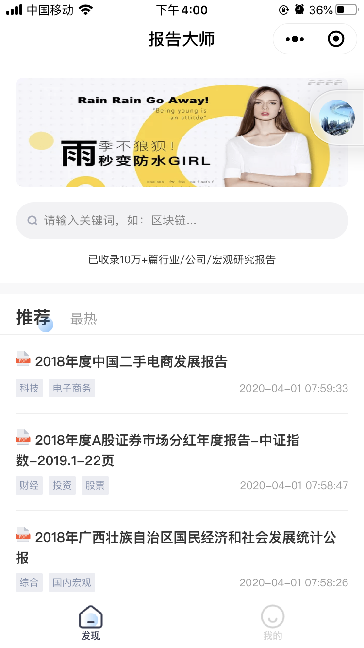 - 在微信中搜索“行业观察报告”即可进入小程序