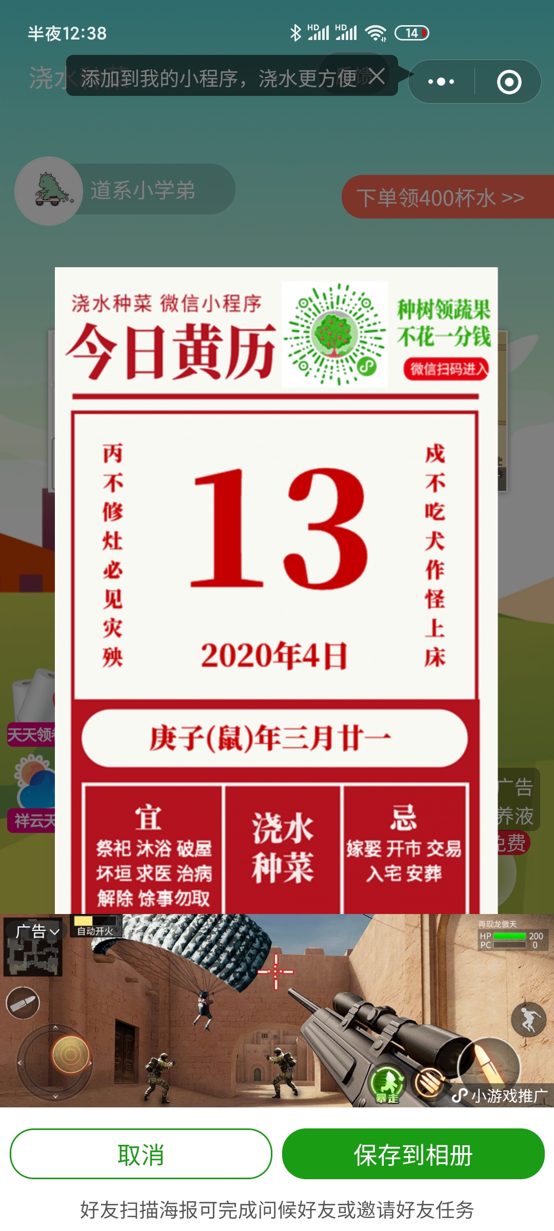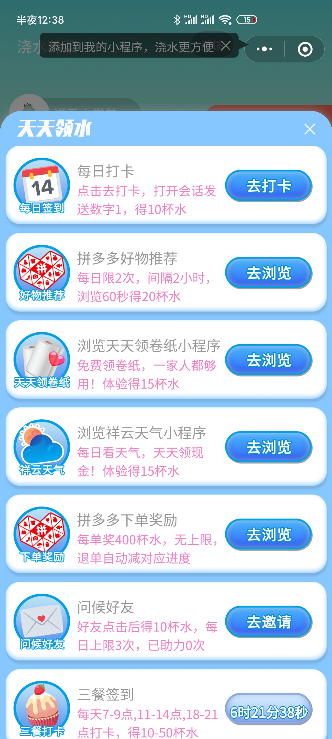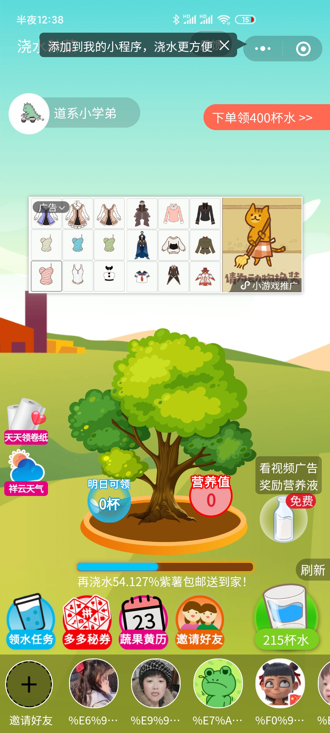 - 在微信中搜索“浇水种菜”即可进入小程序