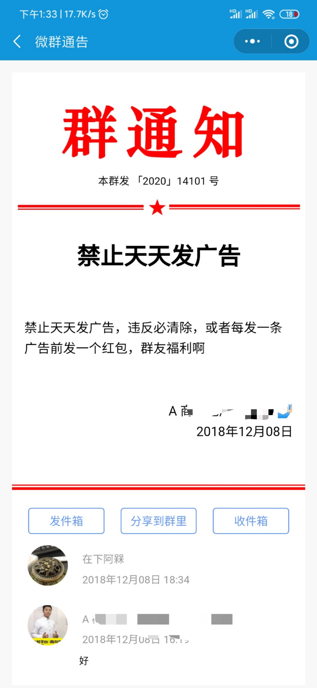 微群通告微信小程序,免费帮助群主发布醒目通告信息,及群友需求醒目显示小工具。简单。使用。好用。免费。