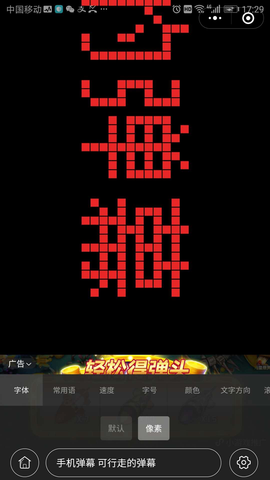 手持弹幕跑马灯微信小游戏使用方法: