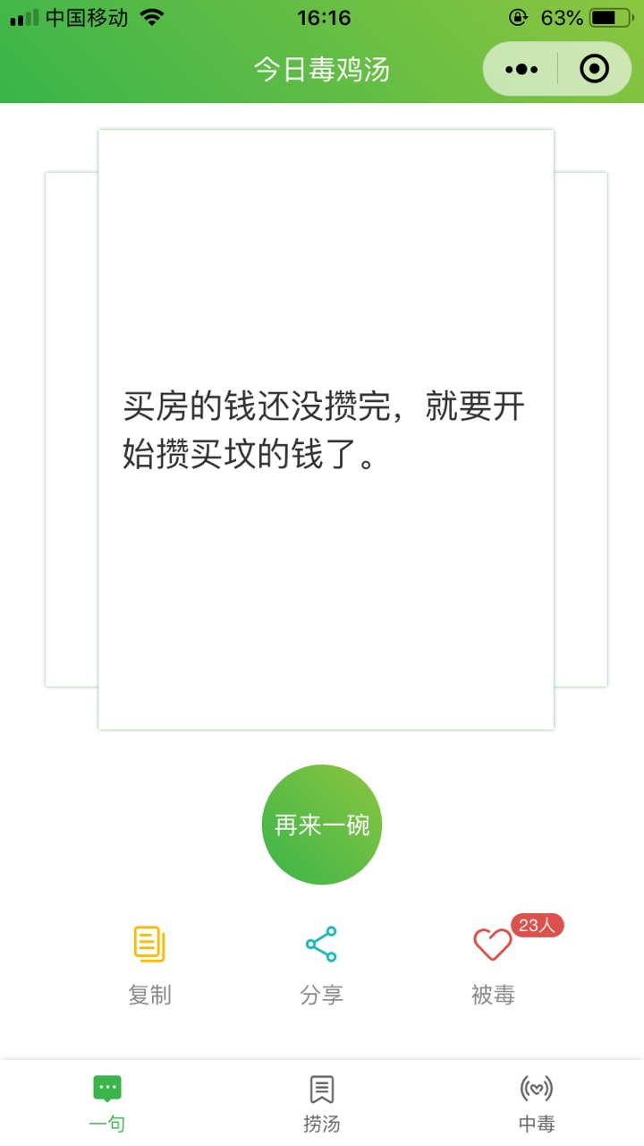 - 使用微信扫描页面上方二维码进入今日毒鸡汤