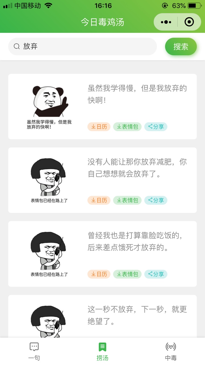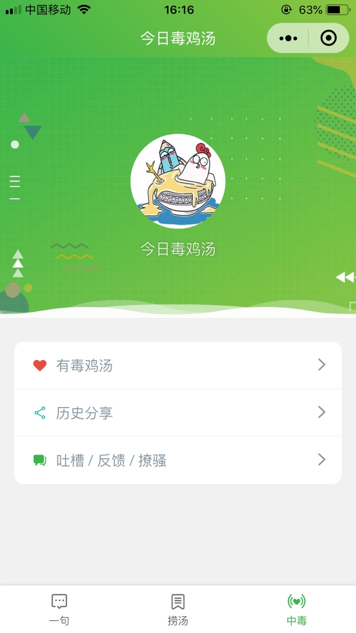 - 在微信中搜索“今日毒鸡汤”即可进入小程序