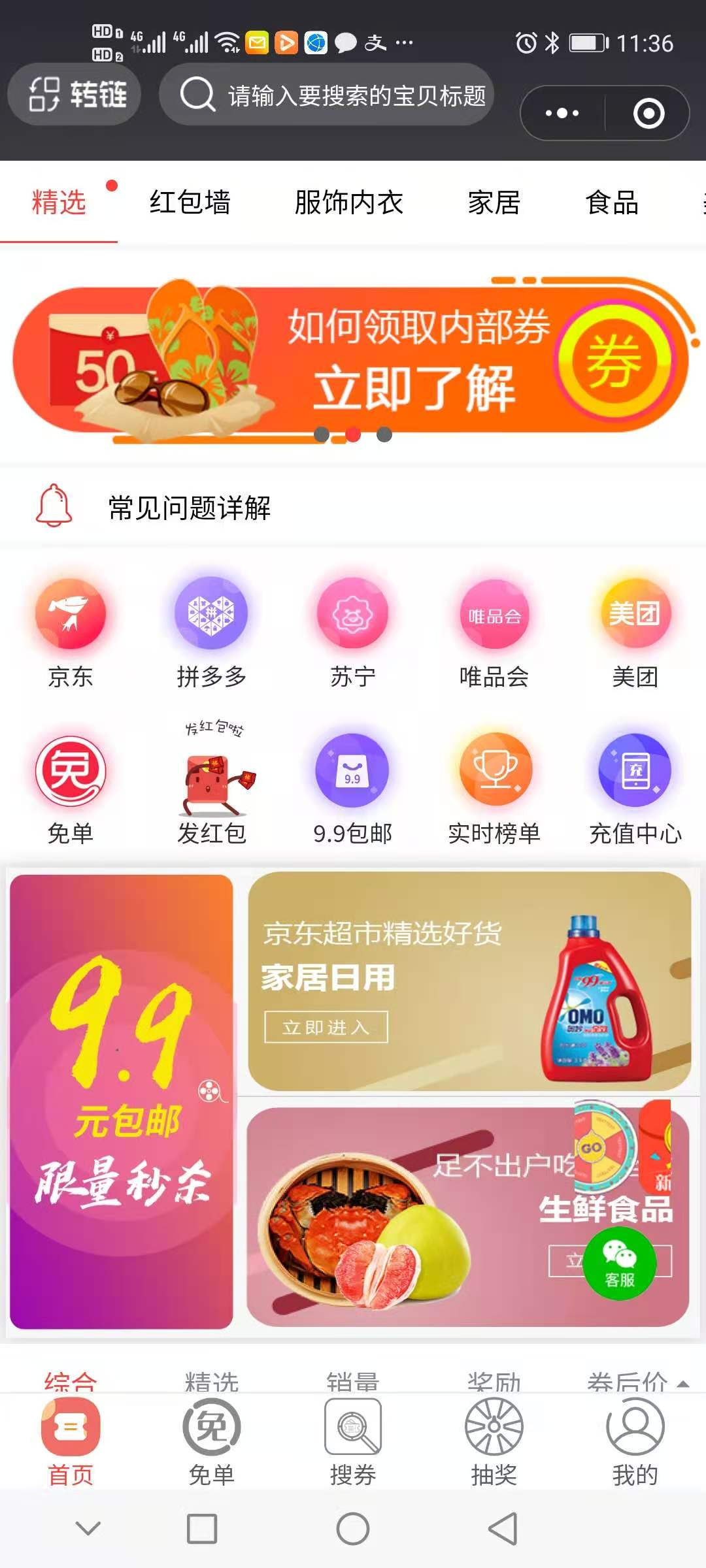 - 在微信中搜索“优惠券免单”即可进入小程序