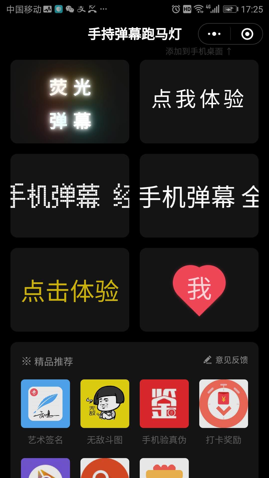 - 在微信中搜索“滚屏弹幕”即可进入小程序