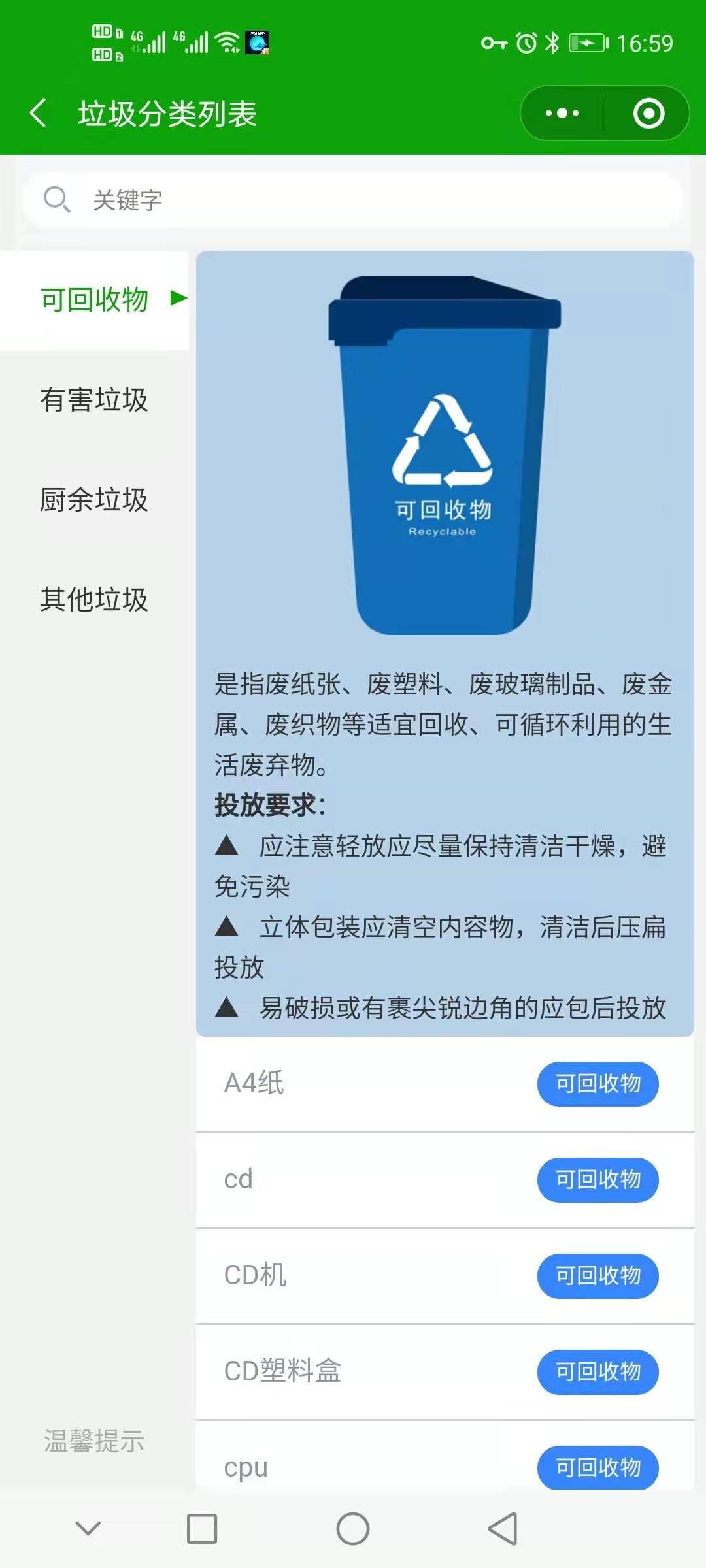 - 在微信中搜索“识别垃圾分类”即可进入小程序