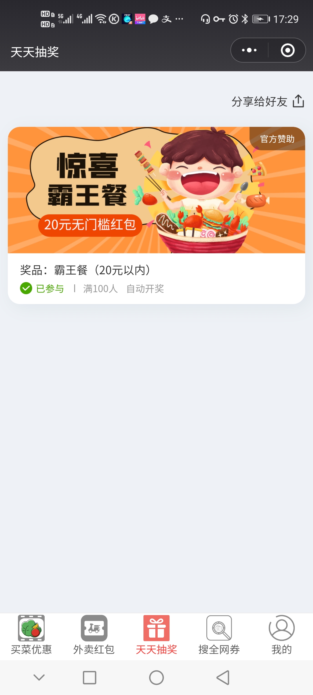 - 在微信中搜索“2177游戏”进入小程序后,搜索外卖买菜就可以找到。