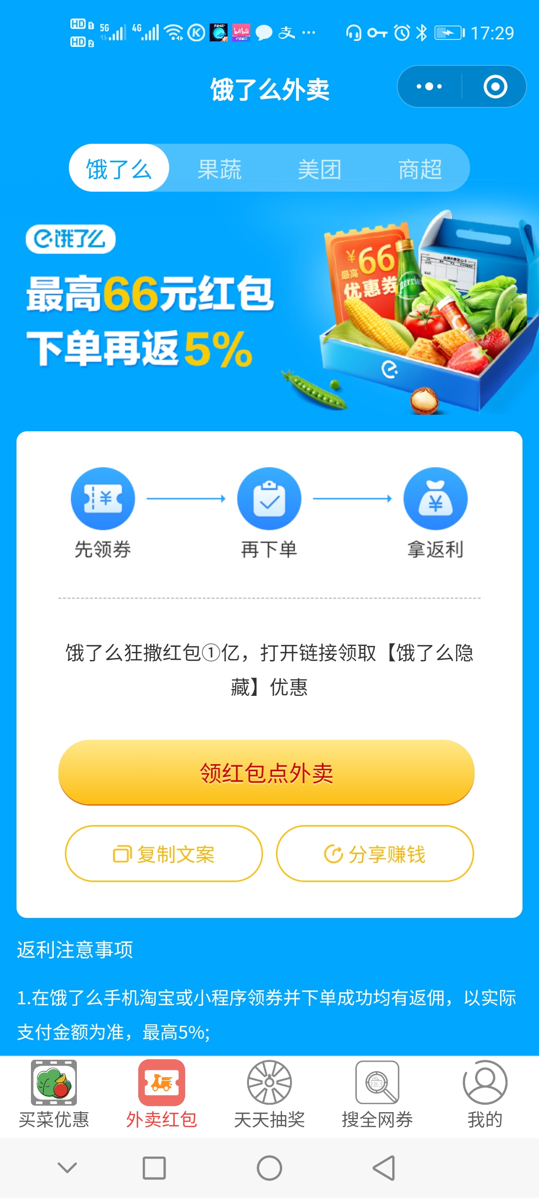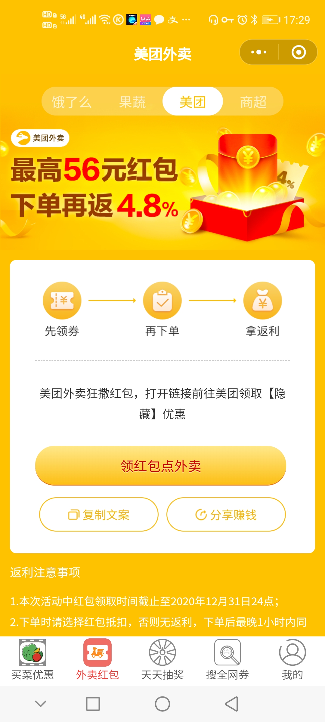 - 使用微信扫描页面上方二维码进入外卖买菜