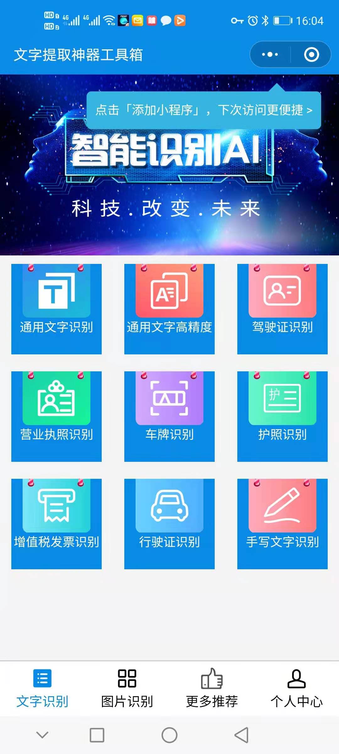 - 在微信中搜索“文字识别神器”即可进入小程序